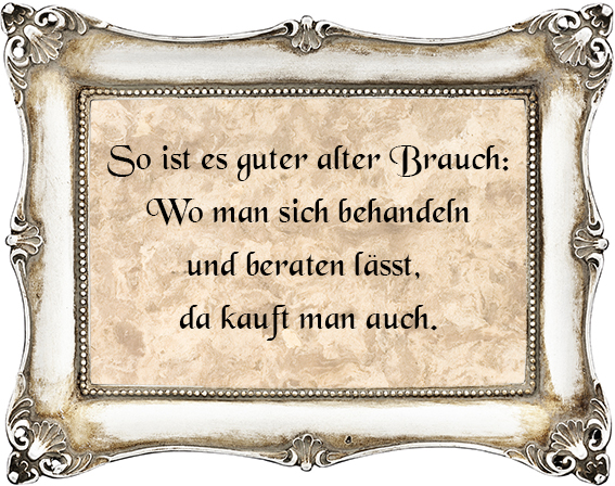 Termine nur nach Vereinbarung von montags bis donnerstags, gerne auch in der Mittagszeit, im Zeitraum von ca. 13.00 bis 15.30 Uhr (letzter Termin).